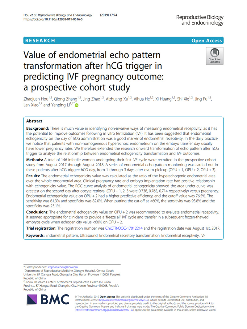 hCG觸發的子宮內膜回聲改變對預測IVF妊娠結局的價值:前瞻性隊列研究
